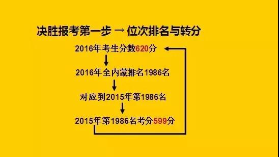 李艷娟:比如我今年考了620分,我在全區(qū)排名1986名。單看分?jǐn)?shù)無法預(yù)估自己的實(shí)力,分?jǐn)?shù)會(huì)因?yàn)轭}的難易程度不同變化大,不過排名是可以參考的。2016年排名在1986名的考生與2015年的第1986名考生的實(shí)力是差不多的。在全區(qū)招生院校招生計(jì)劃變動(dòng)不大的基礎(chǔ)上,2015年第1986名的考生能報(bào)的院校層次也就是今年考第1986名的考生可以考慮的范圍。如果去年第1986名考生的考分是599分,那么你今年的620分就相當(dāng)于去年的599分。