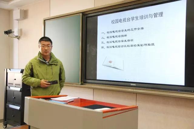 李剛老師針對學(xué)校電視臺、多媒體培訓(xùn)、使用及管理做詳細(xì)的總結(jié)、匯報