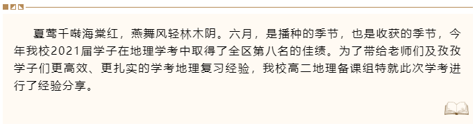 下面即是高二地理組對于本次學考幾點主要的反思與收獲: