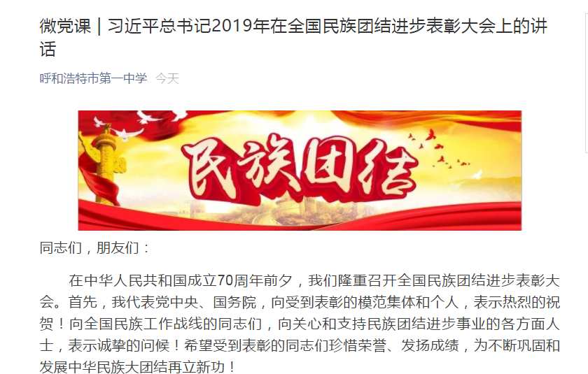 為深入貫徹落實(shí)習(xí)近平總書記關(guān)于民族工作、教育工作的重要講話、重要批示指示精神,呼市一中進(jìn)行了一系列教育活動(dòng)。