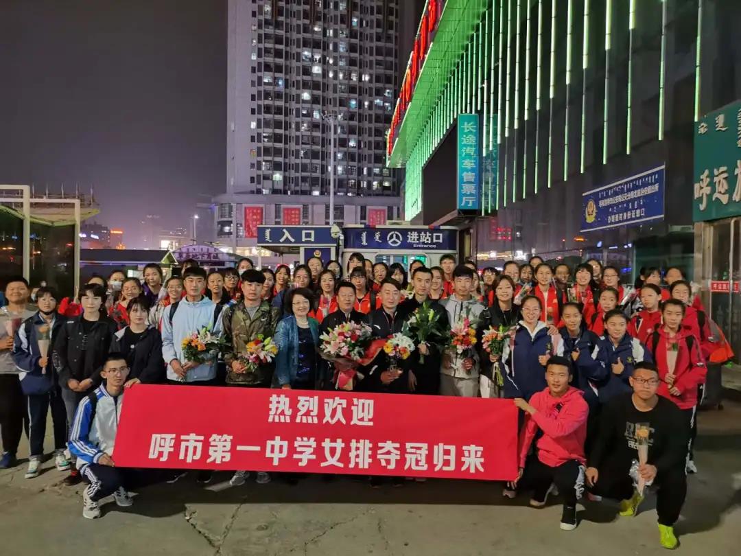 2020年9月26日,有我校女排教練劉展新參演的電影《奪冠》(原名:中國女排)上映的第二天,劉教練率領(lǐng)呼市一中女排,在內(nèi)蒙古“體彩杯”青少年排球錦標(biāo)賽中,經(jīng)過奮力拼搏,在比分落后的情況下,絕地反擊,分分緊咬,擊敗包頭一中女排隊,勇奪冠軍。