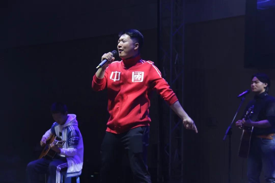 我校陳濟(jì)鑫老師,顧慶老師和高二年級十二班劉春霖同學(xué)一起表演了互動歌曲《火紅的薩日朗》