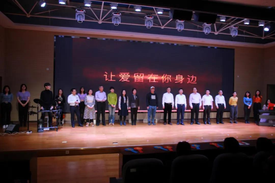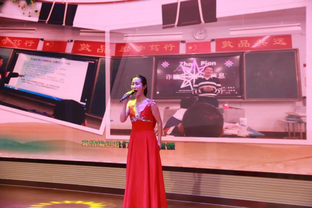 我校全體行政人員最后帶來了《不忘初心》團體節(jié)目,在副校長王永春、黨辦主任張霄云、辦公室副主任朱治宇、總務處主任杜彬、國際部副主任李向京、學生處副主任丁永亮抑揚頓挫的朗誦之后,由副校長李剛、創(chuàng)新實驗室馬麗婷老師的領唱及全體行政人員恢弘大氣的合唱完美詮釋了老師們對教育情懷和責任的堅定,為整場晚會畫上了圓滿的句號。