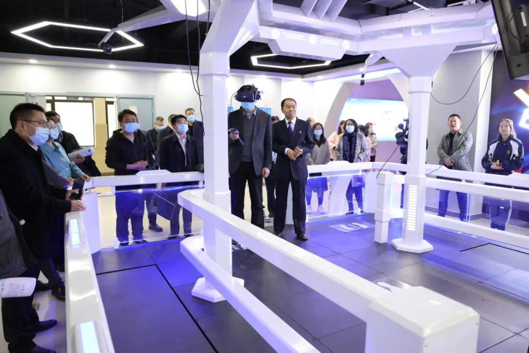 在博雅樓內(nèi),參觀特色課程開展情況及藝術教育成果展示,現(xiàn)場觀摩音樂、舞蹈課、心理健康教育、版畫、國畫課,參觀學生發(fā)展指導中心。在科技體驗中心體驗基礎物理、航天、VR三大展區(qū)120余件展品和VR互動。