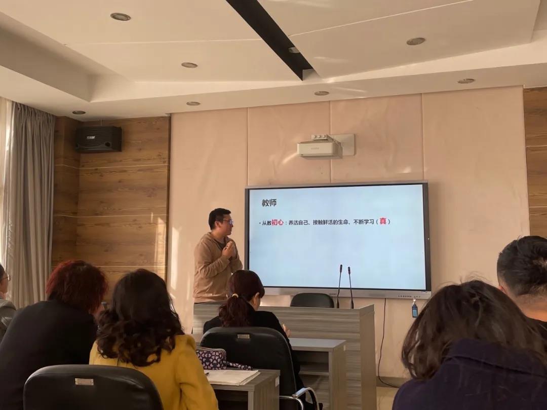 馮思同老師從“工作與生活的關(guān)系”角度出發(fā),帶領(lǐng)教研組成員一起重溫了職業(yè)的初心,講述了與學(xué)生產(chǎn)生共鳴的心理歷程,同時(shí)在教學(xué)方面提出了要重視基本概念的解讀與學(xué)習(xí)。