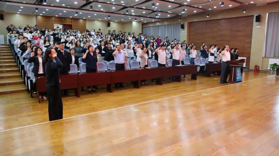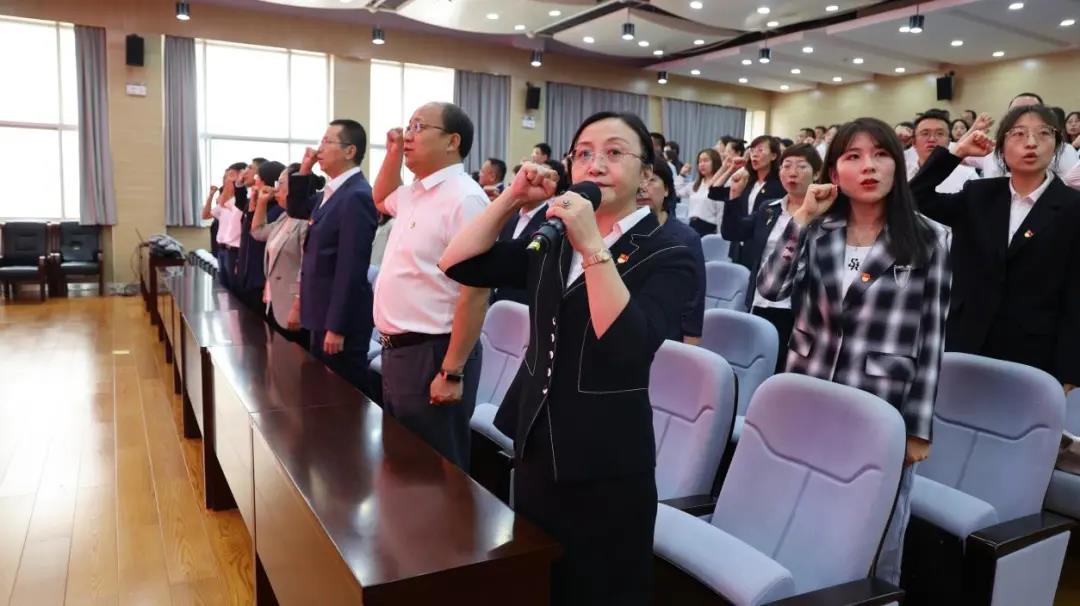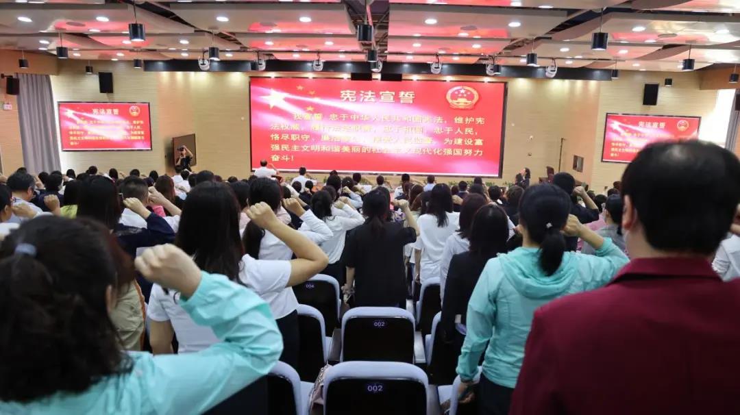 呼市一中全體教職工舉行隆重莊嚴(yán)的憲法宣誓儀式,黨委書(shū)記、校長(zhǎng)付東燕監(jiān)誓,辦公室主任朱治宇領(lǐng)誓。
