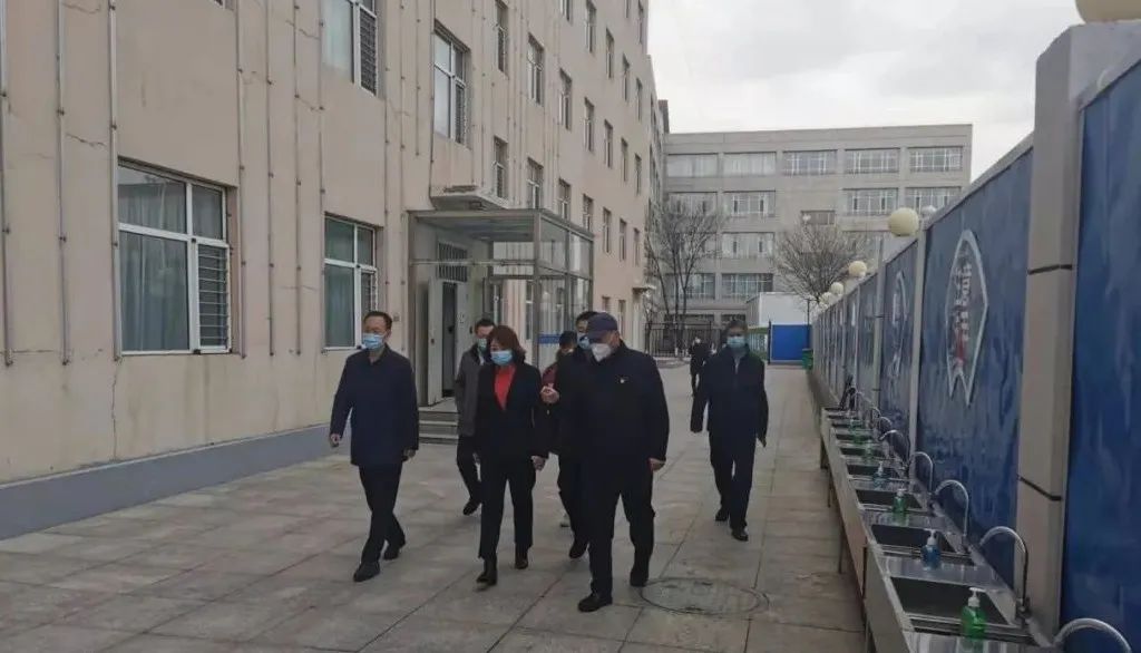 黨委書記、校長(zhǎng)馬波,副校長(zhǎng)王永春一早檢查我校復(fù)課第一天疫情防控部署情況。