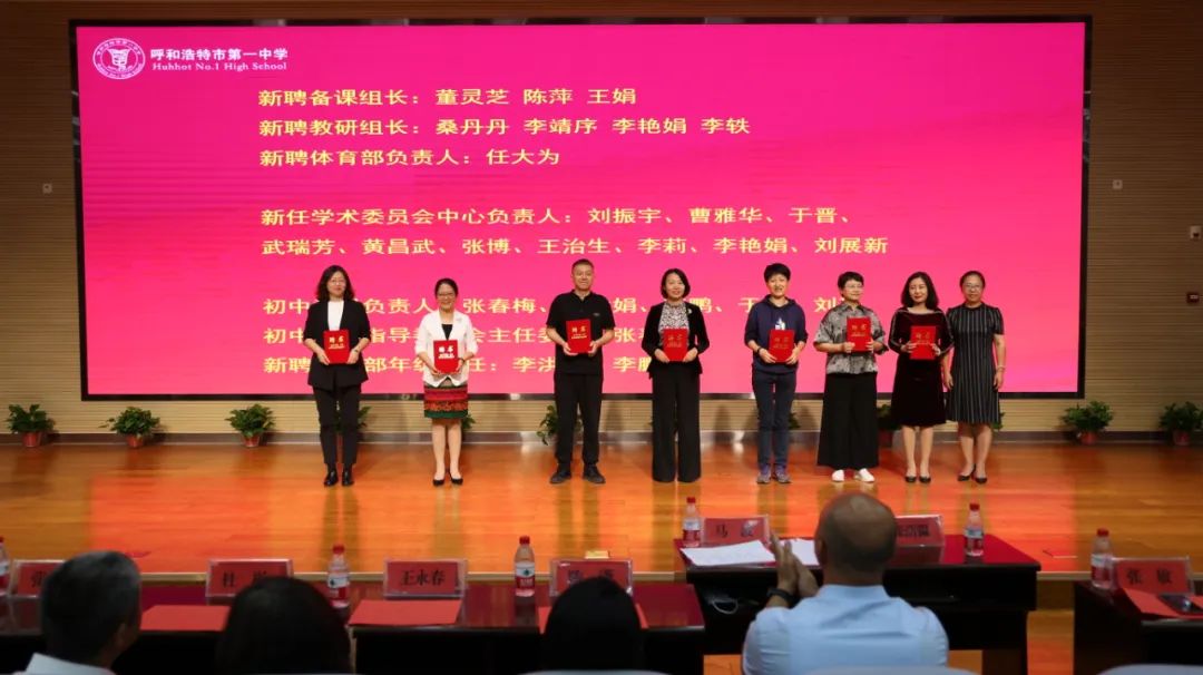 守責(zé)任,勇挑重?fù)?dān),一中像參天大樹(shù)起于毫末,每一道年輪都鐫刻著一代代甘于奉獻(xiàn)的一中人櫛風(fēng)沐雨、篳路藍(lán)縷的拼搏與奮斗。校領(lǐng)導(dǎo)為新聘學(xué)術(shù)委員、教研組長(zhǎng)、備課組長(zhǎng)、新任學(xué)術(shù)委員會(huì)中心負(fù)責(zé)人、初中學(xué)科負(fù)責(zé)人、初中教學(xué)指導(dǎo)委員會(huì)主任委員、新聘博遠(yuǎn)部年級(jí)主任和新聘班主任頒發(fā)聘書(shū)。