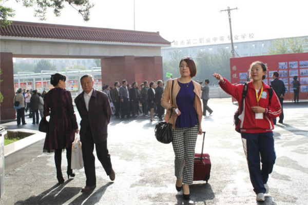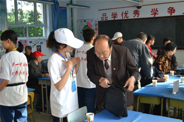 圖為我校學(xué)生接待團(tuán)正為所有參與校慶的領(lǐng)導(dǎo)、校友等來(lái)賓介紹百年一中