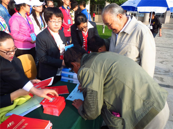 圖為簽到處,工作人員正為參與校慶的所有來(lái)賓進(jìn)行簽到工作