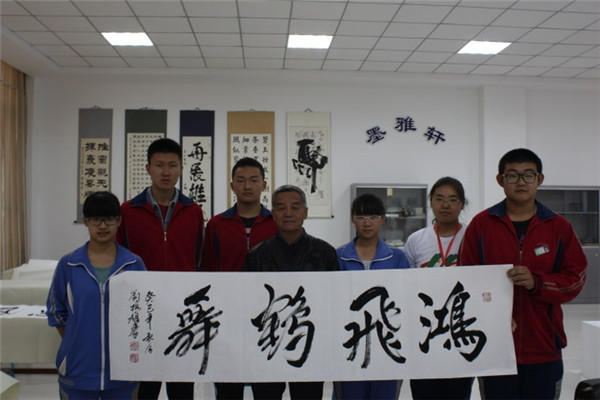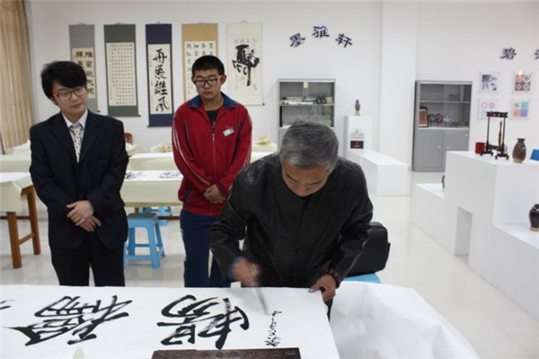 圖為著名書法家劉振雄老先生蒞臨博雅樓“墨雅軒”,為我校校慶題贈(zèng)墨寶