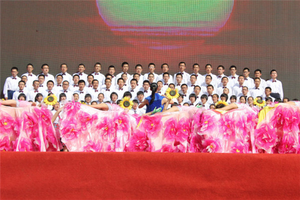 圖為文藝匯演接近尾聲,正在進(jìn)行合唱