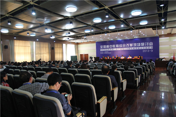 2013年9月28日下午14點30分,全國高中教育綜合改革現(xiàn)場研討會在我校圖書樓四樓報告廳開幕,由中國教師報教師工作部主任劉婷主持會議,研討會上,將有來自全國各地的優(yōu)質(zhì)高中校長通過交流關(guān)于教育現(xiàn)代化和第三代課改的探索與思考等,分享學(xué)校發(fā)展成就、學(xué)習(xí)交流教學(xué)成果,對深化教育教學(xué)改革、共商教育美好明天大計具有特殊而深遠意義。