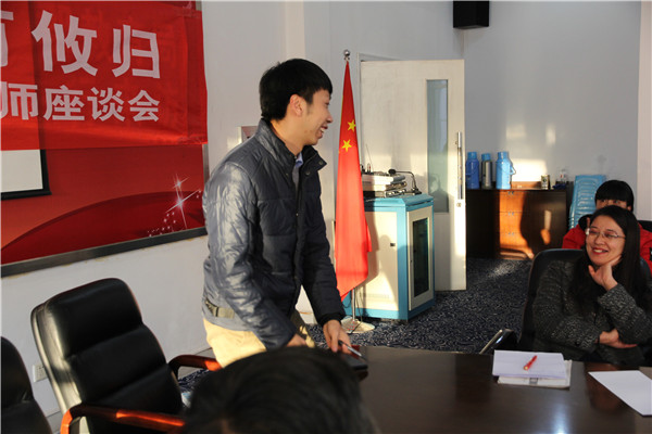 教研室胡紹勇主任主持座談會,他說:“學校一直以來特別注重教師隊伍的建設,青年教師作為“青藍工程”備受領導關(guān)注。而在本學期開展的新一輪課程改革中,青年教師作為學校發(fā)展的生力軍,應該是接受新思想、新事物和上手特別快的群體,在新課改中應該發(fā)揮重要的作用。因此青年教師要好好利用這一平臺,在教師職業(yè)生涯中快速健康的成長起來,早日成為學校的骨干教師”。