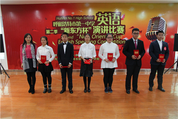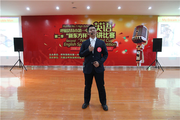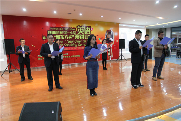本屆演講比賽我校特別邀請(qǐng)了新東方科技教育集團(tuán)呼和浩特學(xué)校范亞飛校長(zhǎng)、呼市教研室英語(yǔ)教研員梁蕓老師等擔(dān)任校外裁判,校內(nèi)裁判由特級(jí)教師陳超英老師、英語(yǔ)教研組組長(zhǎng)王秀麗老師、英語(yǔ)模聯(lián)社社長(zhǎng)王淼老師、高三備課組組長(zhǎng)李洪娟老師、高一備課組組長(zhǎng)趙學(xué)芳老師、高二年級(jí)郭志杰老師組成。
