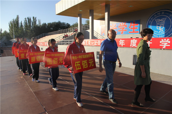 2014年9月3日下午,在我校體育場隆重舉行了2014-2015學年度第一學期開學典禮,湯俊文校長新學年致辭,興華組(高一年級)、晟騰部(高二年級)、擎華組(高三年級)正式啟動,并為全體師生帶來精彩節(jié)目,最后我校八七屆校友為回報母校,鼓勵學子,成立“勵勤”獎學金。