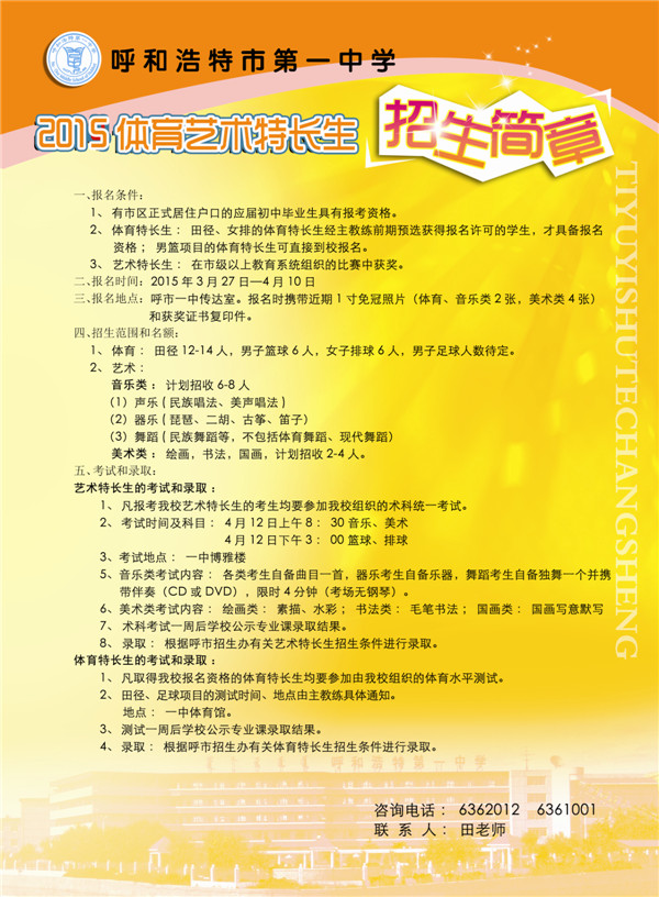 2015年體育藝術(shù)特長(zhǎng)生招生簡(jiǎn)章