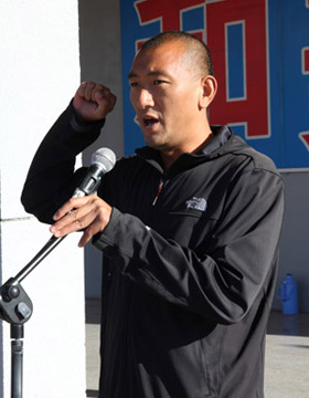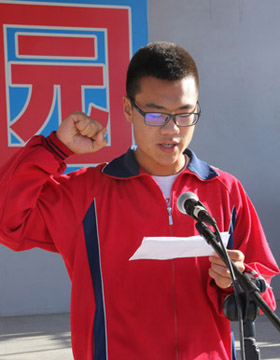 教師代表寇瑞敏致辭:“希望同學(xué)們?cè)谛碌钠鹋芫€上,聽(tīng)從發(fā)令槍的召喚,用堅(jiān)強(qiáng)的意志,進(jìn)取的精神,不懈的努力和忘我的速度去追趕前方的太陽(yáng)”