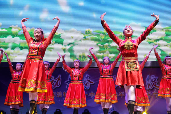 2015年12月31日下午,呼市一中全體師生齊聚一堂,在學(xué)校體育館內(nèi)共同慶祝元旦,多才多藝的師生們都精心準(zhǔn)備了精彩的節(jié)目,喜迎2016年的到來。本次演出首先以大氣磅礴的民族風(fēng)·民族魂的舞蹈開場,把老師和同學(xué)們帶入到辭舊迎新的喜悅之中。展演共分為三個篇章:青春的贊歌、大美一中人、走向新輝煌。此外,我們還進(jìn)行了“閃耀一中,2015年度人物”頒獎典禮,過去的一年里,我校涌現(xiàn)了一位位品德高尚,帶領(lǐng)一中走向新未來的師生。相信在未來的日子里,我們會有更多優(yōu)秀人物,一中將會更加輝煌。