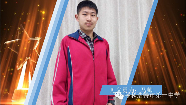 自治區(qū)級“見義勇為”稱號獲得者。年僅15歲的他面對搶劫犯罪勇敢挺身,與同學制服歹徒。自古英雄出少年,你用行動佐證了這句老話,你用行動弘揚了中華民族的傳統(tǒng)美德,你用行動踐行了一中人的精神,祝賀你少年!
