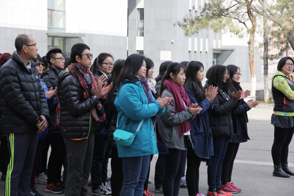 香港東涌天主教學(xué)校師生團(tuán)與我校師生共同參加升旗儀式