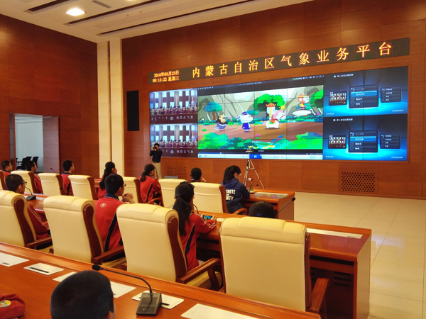 2016年3月23日上午,呼和浩特市第一中學地理組周美芝和樊勇兩位教師帶領(lǐng)高一年級及綠眼睛工作室部分成員約50多名學生參觀了內(nèi)蒙古氣象局。師生在氣象局工作人員的引導(dǎo)下,分別參觀了氣象模擬廳、氣象制作與播報廳、氣象知識展示與講解廳、氣象實測區(qū)等。