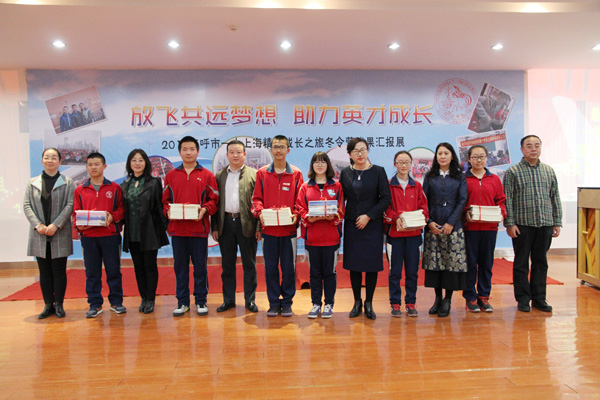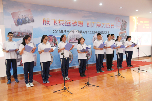 3月31日下午,呼市一中部分學(xué)生和家長齊聚博雅樓圓弧大廳,舉行了以“放飛共遠(yuǎn)夢想,助力英才成長”為主題的2016呼和浩特市第一中學(xué)上海冬令營成果匯報,大家通過活動的照片和視頻資料共同回顧了在上海冬令營的學(xué)習(xí)、體驗(yàn)過程,仿佛又回到了那時豐富多彩、緊張有序的生活中。本次冬令營首次采用了小組構(gòu)建模式,通過各種活動增強(qiáng)了小組的凝聚力、向心力,同時也增強(qiáng)了同學(xué)們對小組學(xué)習(xí)的認(rèn)同感、歸屬感、榮譽(yù)感。近10天的冬令營生活,師生們朝夕相處,感情增進(jìn),同學(xué)們的點(diǎn)滴進(jìn)步都讓老師們激動和欣慰,由此“冬令營”已經(jīng)成為具有一中特色的德育品牌課程。希望通過這次成果匯報展出能更多地凝聚學(xué)校、家長、同學(xué)們的力量,讓同學(xué)們在大美一中筑夢、圓夢;在大美一中成長、成才、成就自我!!