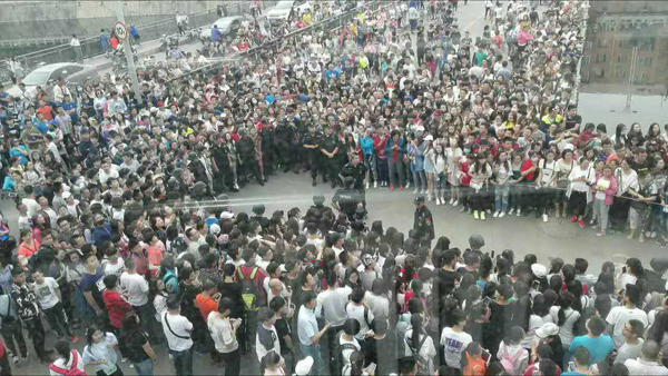 早上九點,校門外就人頭攢動,人滿為患,我大一中這么受歡迎啊
