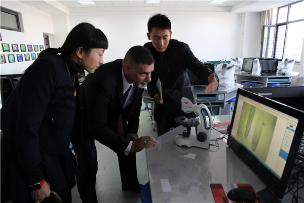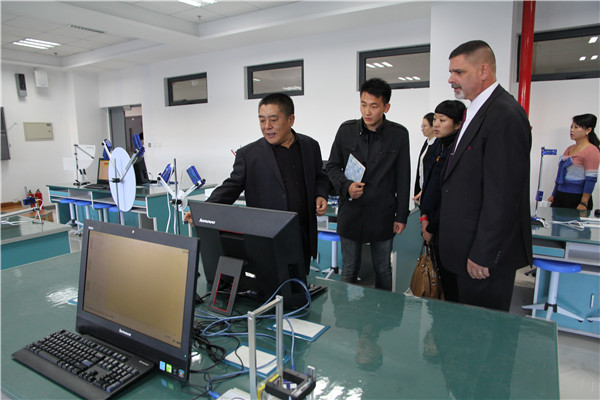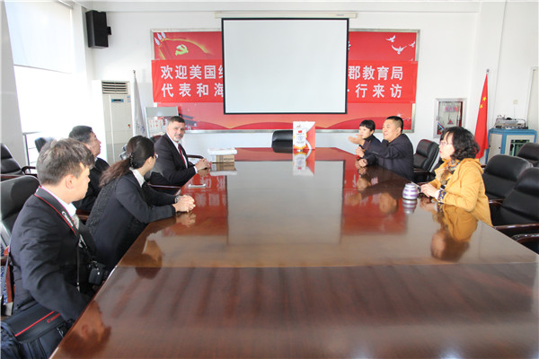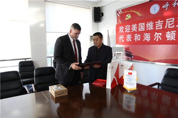 湯俊文校長與美方教育代表會談,并雙方互贈了紀(jì)念品和禮物