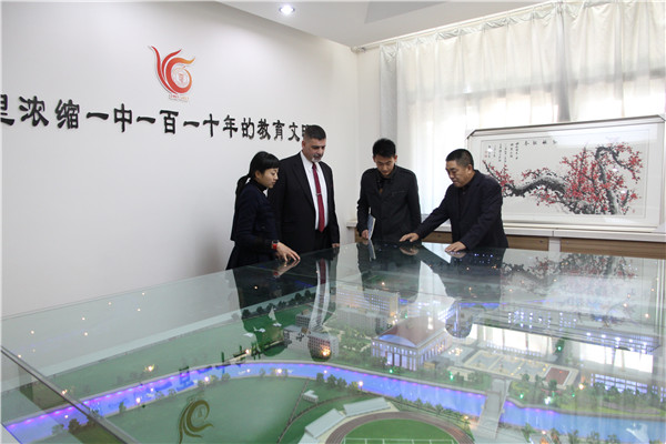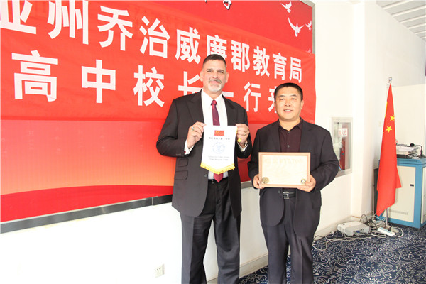 10月17日上午,美國維吉尼亞州喬治威廉郡教育局代表和海爾頓高中校長一行來我校參觀交流,湯俊文校長在我校圖書樓會議室會見了到訪的外賓,并向來訪的美國教育同仁介紹了我校的百年歷史、發(fā)展現(xiàn)狀及未來規(guī)劃,特別是介紹了我校外語課程合作交流班目前的課程開設(shè)情況和與美方的合作構(gòu)想。美方的高中校長也介紹了所在學(xué)校的情況,并表達了來我校參觀和交流的激動心情,希望雙方未來在更多的項目和領(lǐng)域上有深層次的交流和合作。會談結(jié)束,雙方互贈了紀(jì)念品和禮物。