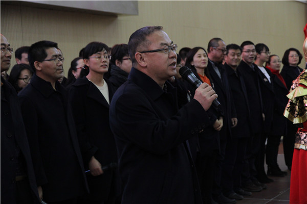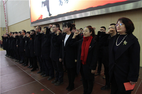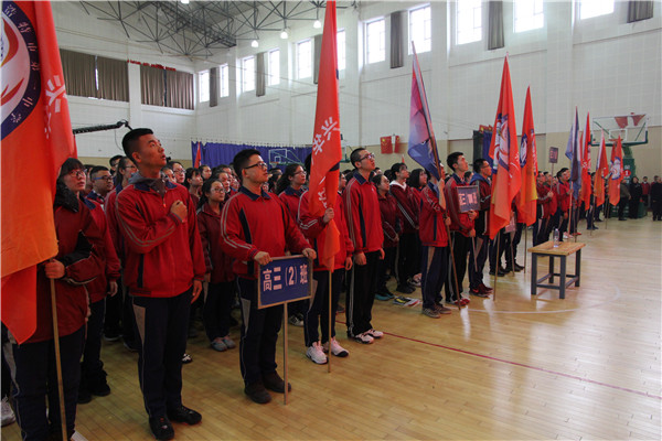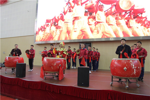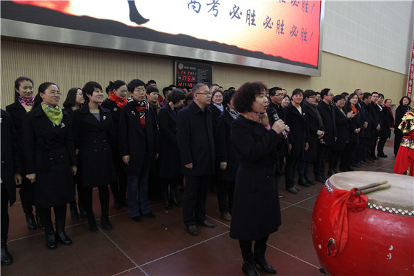 開(kāi)場(chǎng)前學(xué)校學(xué)生發(fā)展指導(dǎo)中心的李艷娟老師為學(xué)生們做了心理團(tuán)體輔導(dǎo)小游戲,讓氣氛熱烈了起來(lái)。大會(huì)在雄壯的國(guó)歌聲中開(kāi)始,張浩韞副校長(zhǎng)為全體興華組學(xué)生熱情寄語(yǔ),希望他們拼搏一百天,奮斗一百天,專心每一天,專注每一刻。學(xué)生家長(zhǎng)代表吳大海老師也代表家長(zhǎng)為學(xué)子們加油鼓勁。年級(jí)組長(zhǎng)丁永亮激情澎湃的吶喊出了興華組師生對(duì)17高考必勝的信念。在震撼人心的威風(fēng)鑼鼓聲中,全體高三教師登上舞臺(tái),集體宣誓,“竭盡全力,同舟共濟(jì),二零一七,創(chuàng)造奇跡”,向興華學(xué)子發(fā)出戰(zhàn)斗的號(hào)召。隨后,在年級(jí)組長(zhǎng)楊立宇老師的帶領(lǐng)下,全體學(xué)生齊聲吶喊:沖刺一模,蓄力高考,奮戰(zhàn)百日,拼搏青春,高考必勝,必勝,必勝!