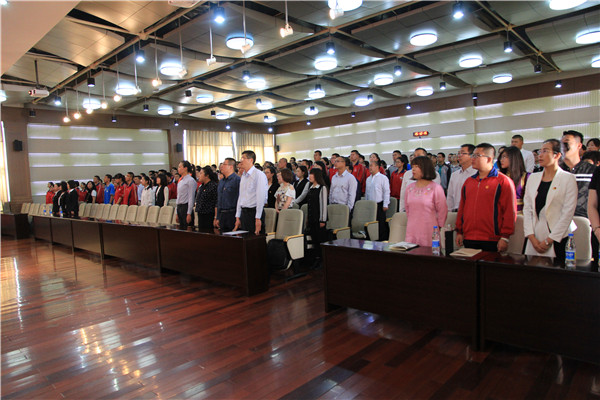 下午3:00整,報告廳里響起了莊嚴(yán)的國歌聲,全體與會者齊唱中國共青團(tuán)團(tuán)歌,“不忘初心跟黨走”主題團(tuán)日活動拉開了序幕,本次活動分為表彰和主題團(tuán)課。