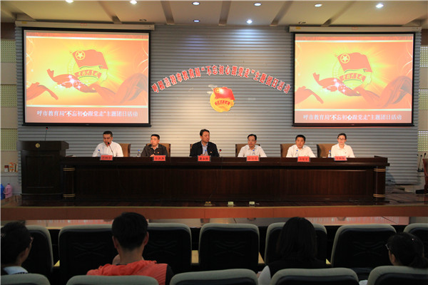 為了深入落實“學(xué)習(xí)總書記講話 做合格共青團(tuán)員”主題教育實踐活動,牢記習(xí)近平總書記五四青年節(jié)前夕對青年的寄語:“要充分發(fā)揮青年的創(chuàng)造精神,勇于開拓實踐,勇于探索真理?!?、 “廣大青年人人都是一塊玉,要時常用真善美來雕琢自己,不斷培養(yǎng)高潔的操行和純樸的情感,努力使自己成為高尚的人。”呼市教育局于 5月16日在呼市一中舉行了“不忘初心跟黨走”主題團(tuán)日活動。大會由市教育局青少年工作科巴特主持,呼市教育局黨工委委員、黨組成員、副調(diào)研員黃永勝,呼市教育局副調(diào)研員畢洪濤,團(tuán)市委副調(diào)研員蔚效成,團(tuán)市委學(xué)少部副部長、少先隊總輔導(dǎo)員王曉霞,呼市一中校長湯俊文出席了活動。