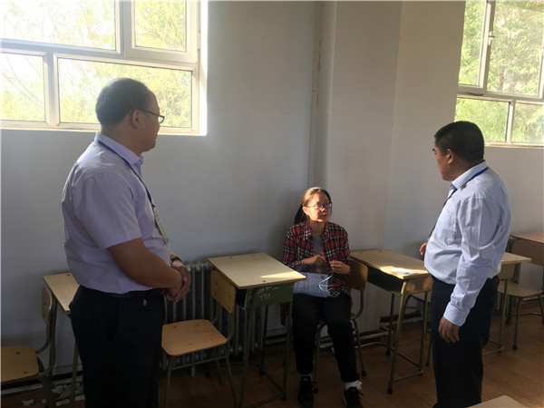 6月8日高考第二天,下午外語科目考試,正在呼市一中巡視的教育廳侯元廳長遇到一起突發(fā)事件。第16考場(chǎng)一位回中的考生, 因來考點(diǎn)途中發(fā)生交通事故,導(dǎo)致腳踝部受傷,血流不止,經(jīng)附屬醫(yī)院對(duì)傷口的緊急處理后,于15:07分由110警車送達(dá)一中考點(diǎn)。侯廳長在詳細(xì)了解了考生的情況后,與考點(diǎn)主考湯校長親自到考場(chǎng)看望考生的傷情??吹娇忌榫w穩(wěn)定,答題正常,經(jīng)詢問本人確認(rèn)能堅(jiān)持考試后,又聯(lián)系看望了家長,安撫家長情緒。并依據(jù)服務(wù)考生的原則,從考生特殊情況出發(fā),侯廳長指示考點(diǎn)按照應(yīng)急預(yù)案,合理滿足考生相關(guān)請(qǐng)求,準(zhǔn)許延時(shí)7分鐘,經(jīng)自治區(qū)招辦批復(fù)同意,并與考生反復(fù)溝通后,考生表示不需要延時(shí),并表達(dá)了對(duì)所有給予她幫助的領(lǐng)導(dǎo)、交警和老師的感謝。