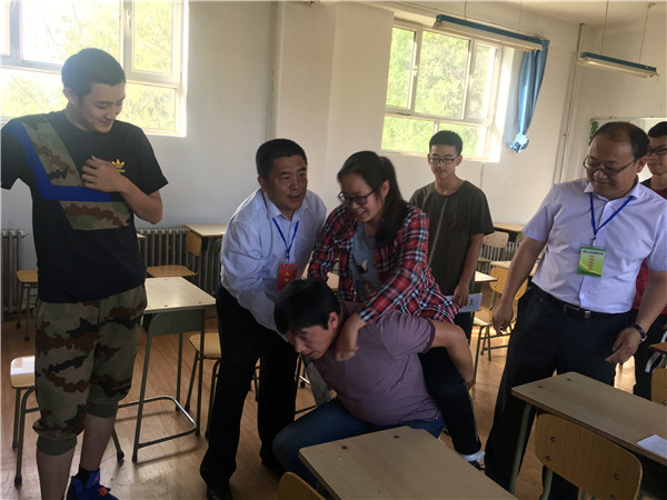 隨后,我??倓?wù)處副主任布和將考生背下樓