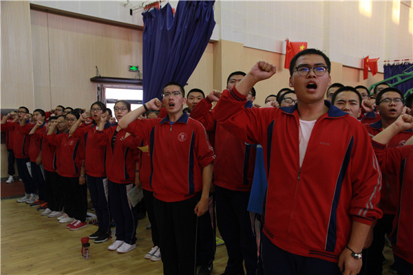 今以誓天地,擎華意氣彰;一諾勤奮進(jìn),高考當(dāng)自強(qiáng);