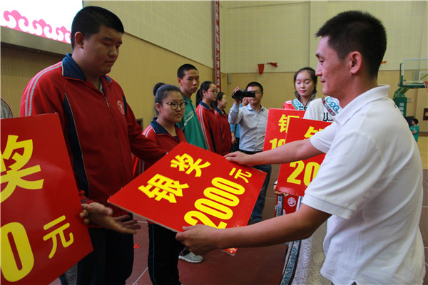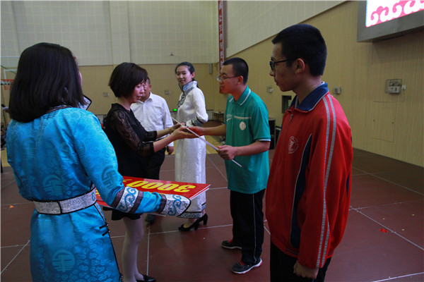 獲2016—2017學(xué)年度“勵(lì)勤獎(jiǎng)學(xué)金同學(xué),”頒發(fā)“八七勵(lì)勤獎(jiǎng)學(xué)金”的嘉賓是呼市一中八七屆校友:孟偉、王秦
