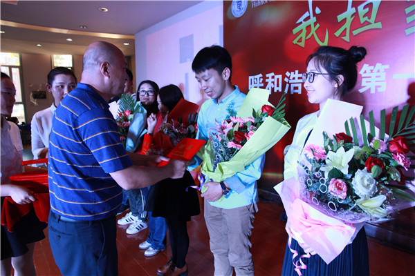 “走到擎華橋的盡頭,坐在博雅樓的門口,輕輕哼著歌耐心守候”。每一年這個季節(jié)的關(guān)鍵詞都是收獲希望,每一年這個月份的關(guān)鍵詞都是感謝師恩,每一年的這一天,都讓我們更深刻地體驗到身為教師的職業(yè)自豪感。在第33個教師節(jié)來臨之際,呼市一中全體教職員工齊聚博雅樓圓弧大廳,舉行了主題為“我擔(dān)當(dāng)、我發(fā)展、我幸?!钡慕處煿?jié)頒獎暨聘任儀式,慶祝我們自己的節(jié)日。